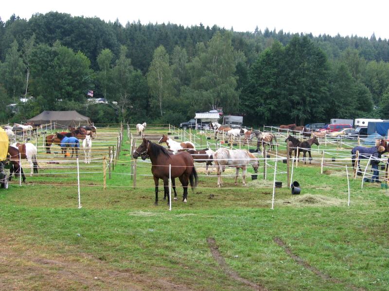 Frankenhöhe gehört. Es geht stetig bergauf und -ab, natürlich bei ständigem Gegenwind. Ich beobachte eine größere Ansammlung von Leuten mit Pferden und frage mich, was woh