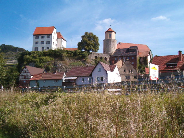 einem Brunnen unterhalb der Burgruine nehme ich meine Müsli-Riegel zu mir. Ein älteres Ehepaar setzt sich zu mir und kommt mit mir ins Gespräch. Der Mann erzählt mir, dass wir uns hier in